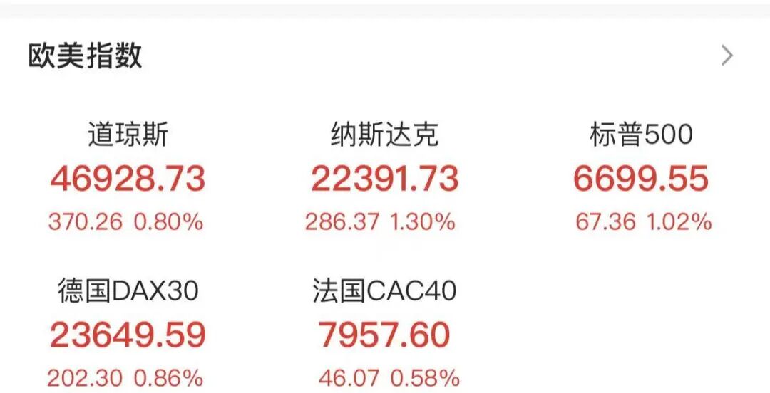欧美股市16日均拉升。截至发稿,纳指、标普500指数涨超1%,德国DAX30指数涨0.86%,法国CAC40指数涨超0.58%。